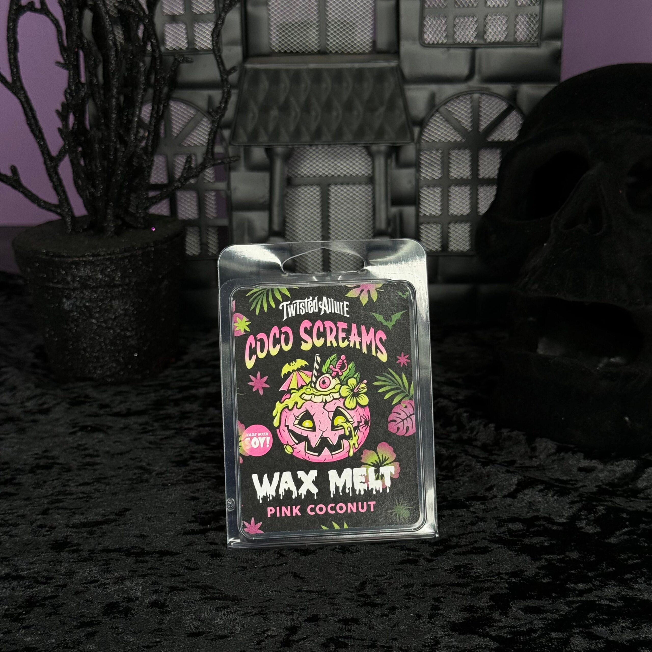 Pink coconut in creamy white form—melt this and unleash a scream of tropical delight from the shadows.