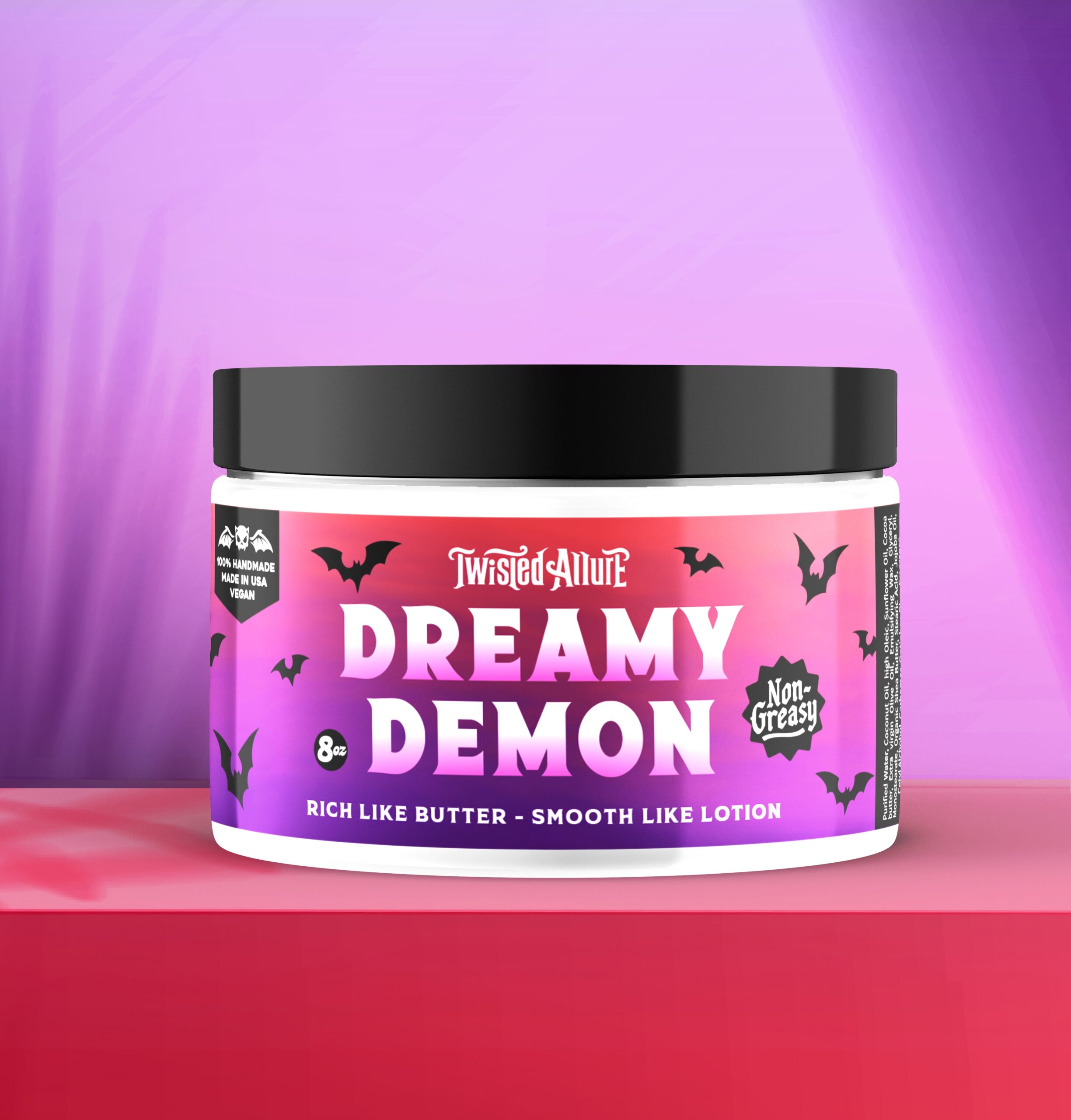 Dreamy Demon Body Butter melts jasmine, vanilla orchid & oakmoss into skin. A luxe floral moisturizer for soft, sinister allure.