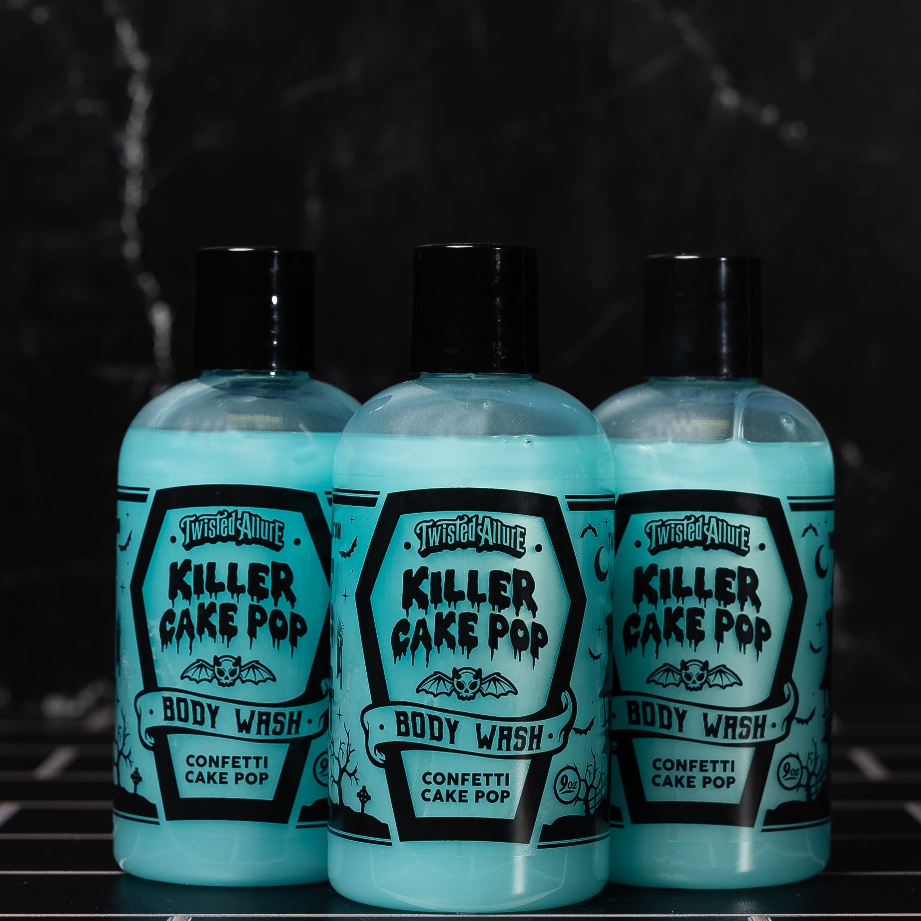 Blue shimmer and confetti cake madness—frosting-fueled and sinisterly smooth.